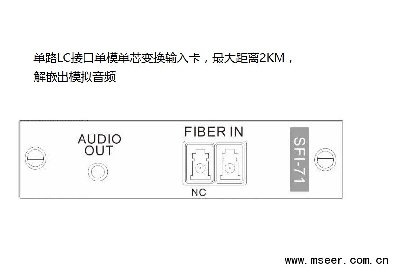 SFI-71 Fiber單通道變換輸入卡,配合SMD主機使用,采用獨立板卡設計,每塊卡支持1路Fiber輸入,LC接口單模單芯,最大距離2KM(可選更遠距離),解嵌出模擬音頻,支持最高1920x1080P60的數(shù)字高清圖像傳輸,