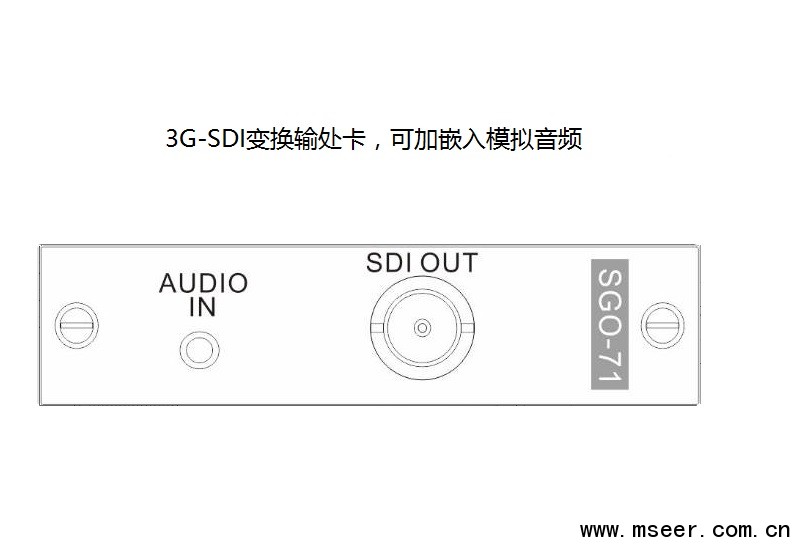 SGO-71 3G-SDI支持上下變換單通道輸出卡,配合SMD主機使用,采用獨立板卡設計,每塊卡支持1路3G-SDI輸出,支持上下變換,兼容HD-SDI及SDI信號,可加嵌入模擬音頻,支持最高1920x1080P60的數(shù)字高清圖像傳輸.