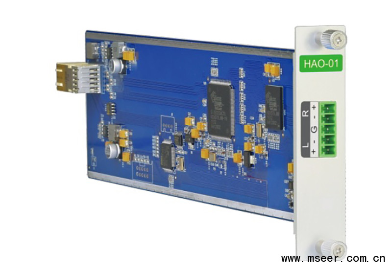 HAO-01 Audio單通道解嵌輸出卡,配合HMD主機使用,采用獨立板卡設計,每塊卡支持1路雙聲道Audio輸出,專門用于內嵌數據音頻的解嵌輸出。