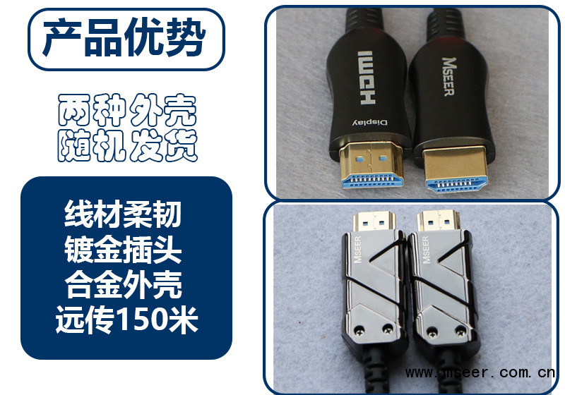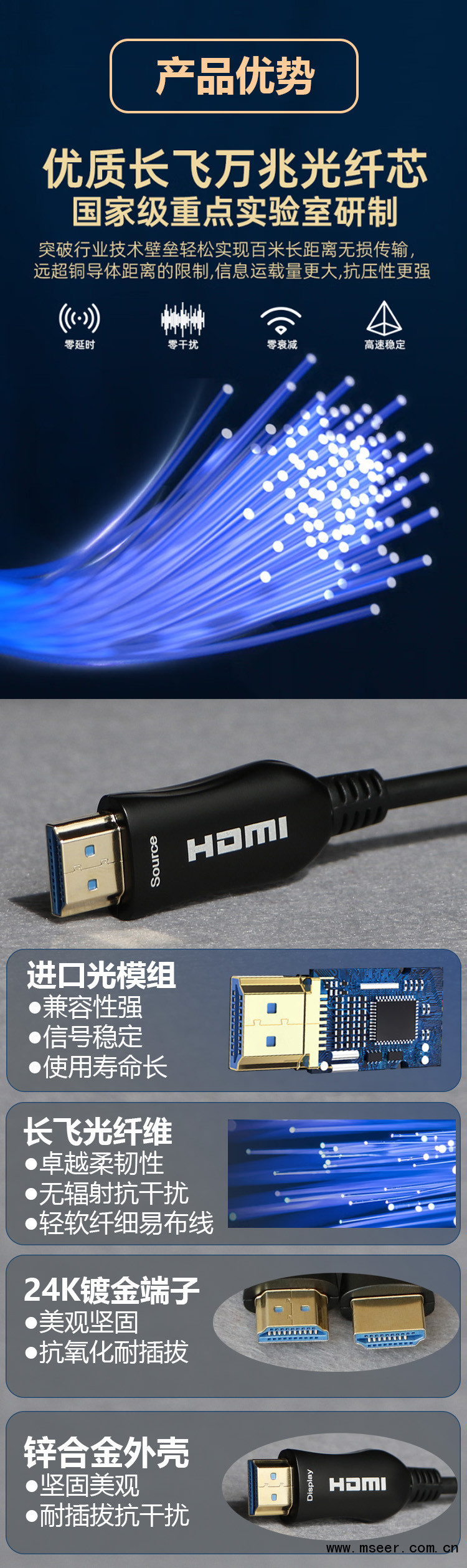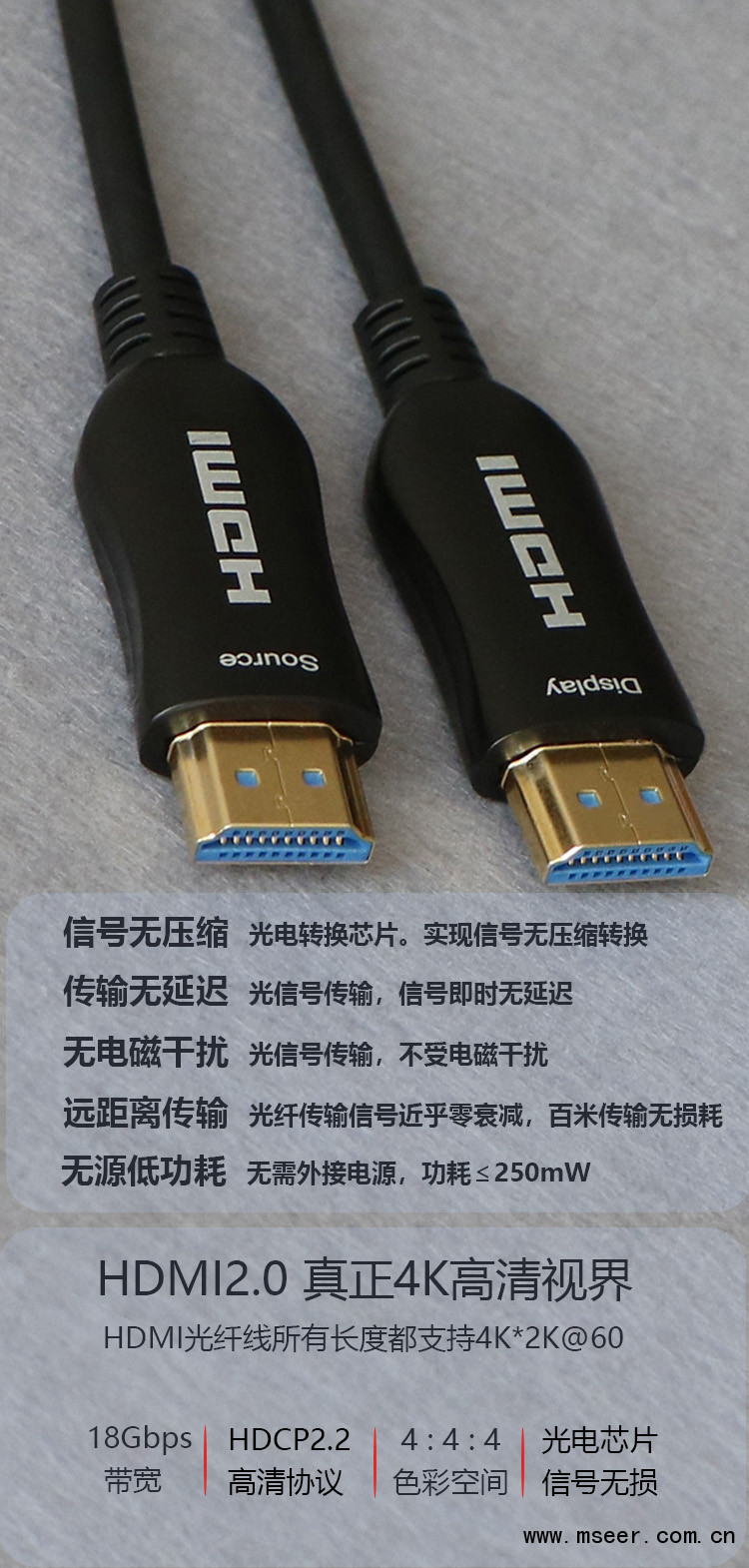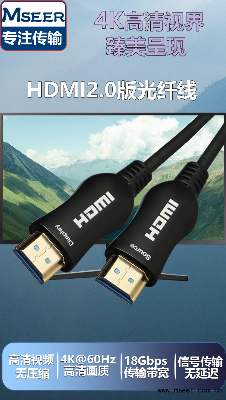 HDMI光纖線具有較好的抗電磁和射頻干擾。相較于傳統(tǒng)銅纜,光纖HDMI線具有傳輸更長(zhǎng)、更細(xì)、更軟、信號(hào)質(zhì)量更高的特點(diǎn),產(chǎn)品可在具有挑戰(zhàn)性的環(huán)境下穩(wěn)定、可靠的工作。
